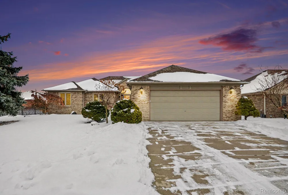 Welcome to this beautifully maintained 2,157 sq ft ranch, tucked away on a quiet dead-end street. From the moment you arrive, you’ll appreciate the attached 2-car garage, well-kept exterior, and peaceful setting. Step through the new entry door into a bright and impressive foyer featuring tile flooring, a statement chandelier, and an arched window that fills the space with natural light. The home opens into an expansive great room with vaulted ceilings, exposed beam detail, recessed lighting, and a cozy fireplace — creating a warm yet impressive gathering space. Brand new vinyl flooring flows throughout the living room, dining area, and all three bedrooms, and the entire interior has been freshly painted for a clean, move-in-ready feel. The dining area connects seamlessly to the kitchen, offering abundant cabinetry and prep space, along with a 4-year-old refrigerator and 5-year-old Bosch dishwasher. A doorwall off the kitchen area brings in beautiful natural light and offers direct views of the fully fenced backyard — creating a perfect indoor-outdoor connection. The primary suite offers privacy and comfort, featuring its own full bathroom and separate his-and-hers walk-in closets, providing exceptional storage and functionality. Two additional generously sized bedrooms share a second full bath, plus a convenient half bath for guests. Entry-level laundry includes a 4-year-old washer and dryer for everyday ease. The unfinished 2,000 sq ft basement provides incredible potential for additional living space, recreation, or storage — bringing the total footprint of this home to over 4,100 sq ft. Major mechanical updates include a furnace and central air system that are just 4 years old. Enjoy a quiet setting just minutes from George George Memorial Park, with easy access to Van Dyke (M-53), Hall Road (M-59), shopping, dining, and everyday conveniences.